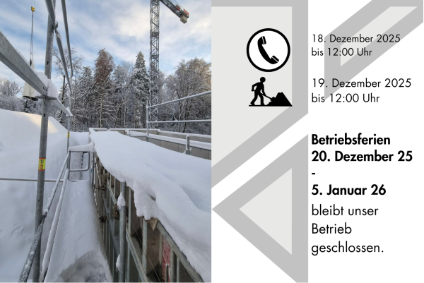 - Auf der Baustelle sind wir bis am 19. Dezember 2025 bis 12:00 Uhr im Einsatz.