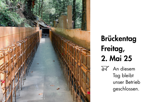 Am Freitag, 2. Mai 2025 bleibt unser Betrieb aufgrund des Brückentags nach dem Tag der Arbeit geschlossen.