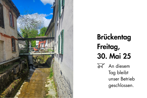 Wir machen Betriebsferien vom 20. Dezember 2025 bis einschliesslich 5. Januar 2026.